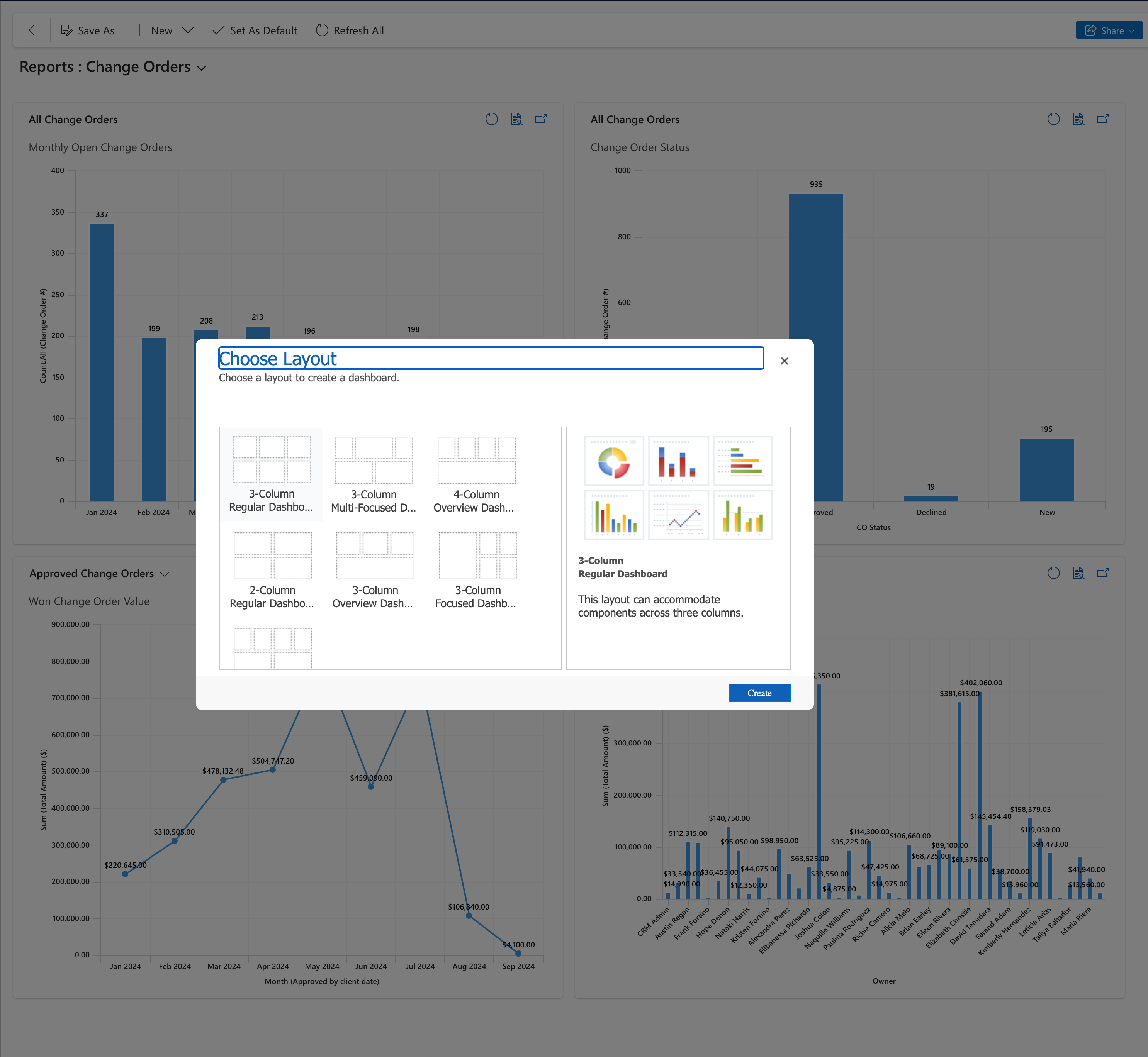 Choose the Layout for your Custom User Dashboard and click Create