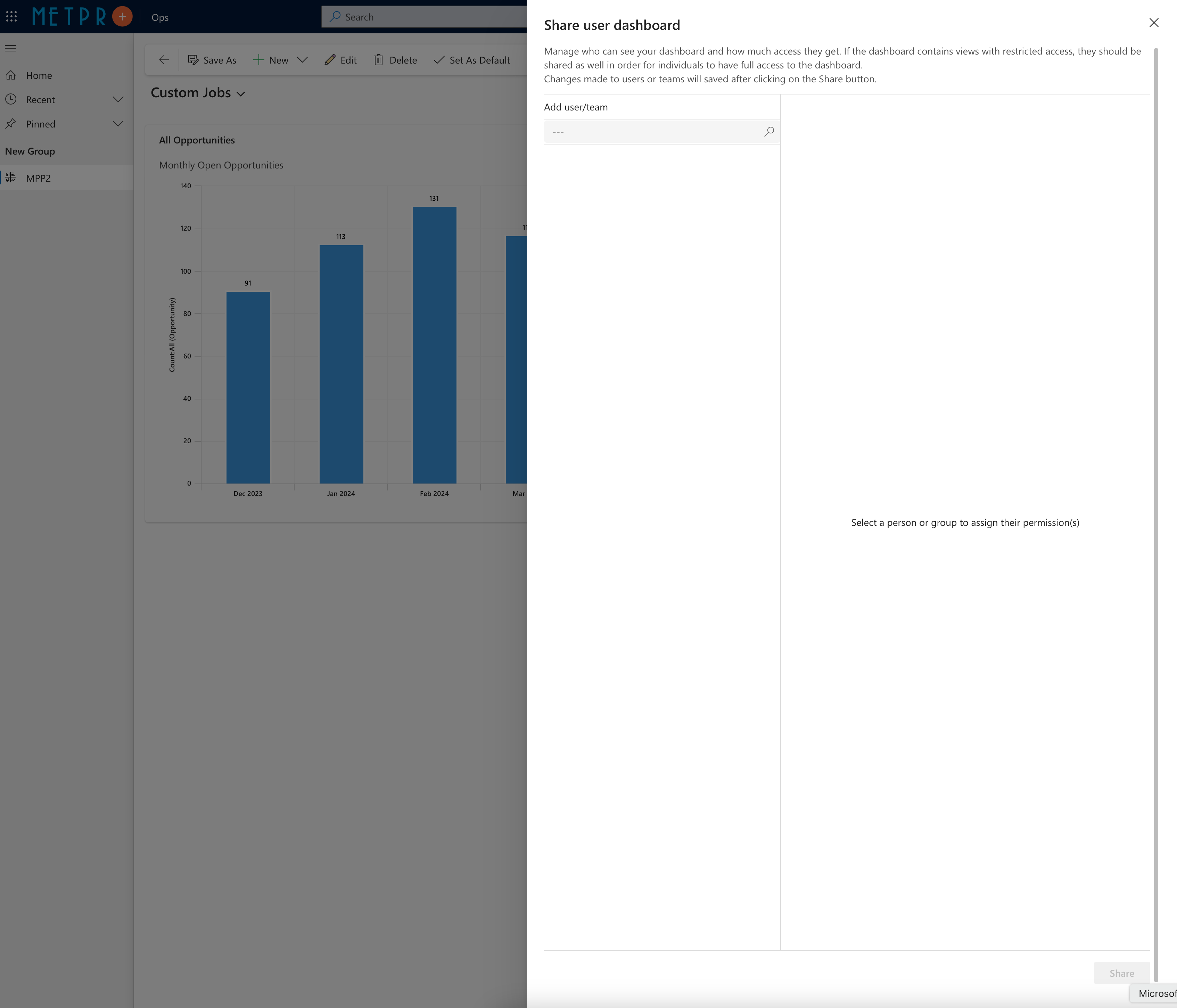 You can Edit, or Share this Dashboard with other team members and manage access levels.
